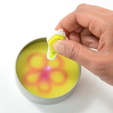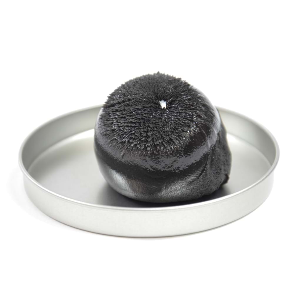 Legt man einen Magnet auf die Knetmasse, verschluckt sie den Magnet bis er vollständig eingehüllt ist. Man kann die Knetmasse dem Magneten folgen lassen. Lege sie einfach im Kreis um einen Magneten und sieh zu, wie sie sich langsam bewegt wie ein lebender Organismus.