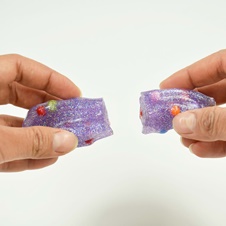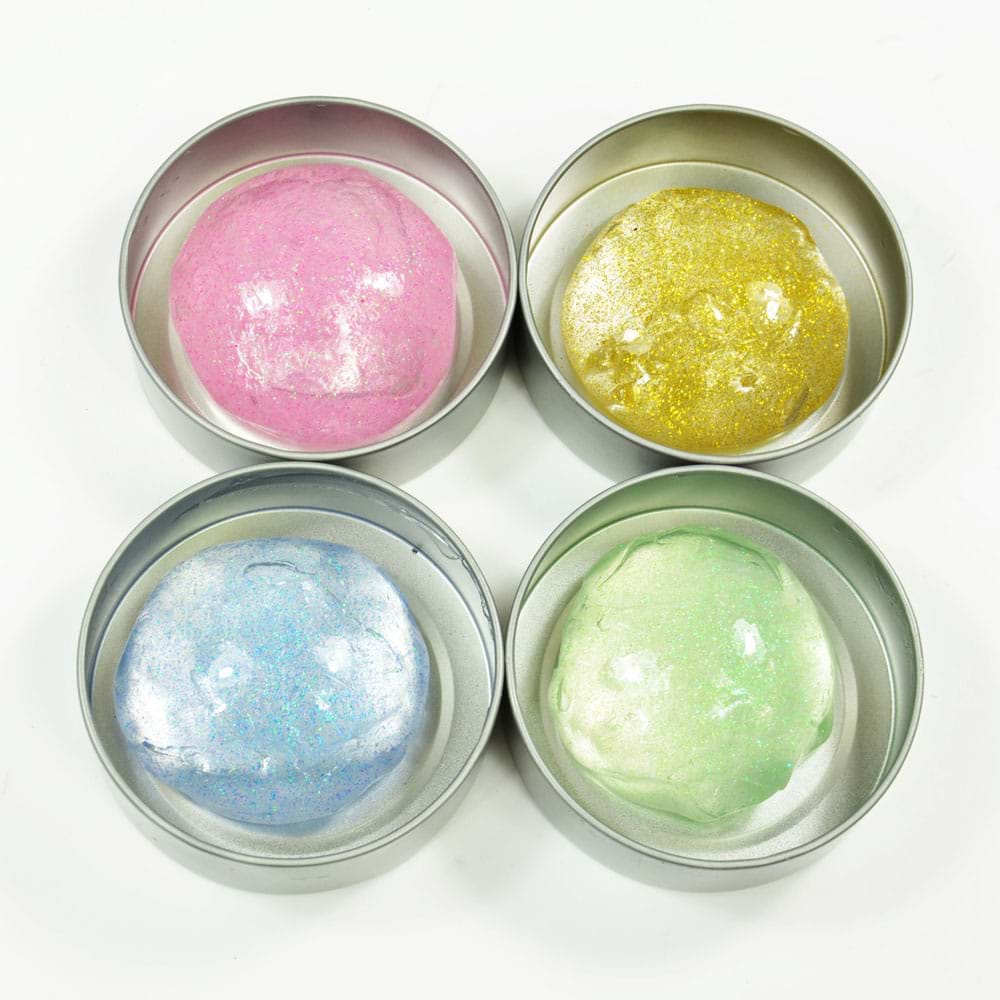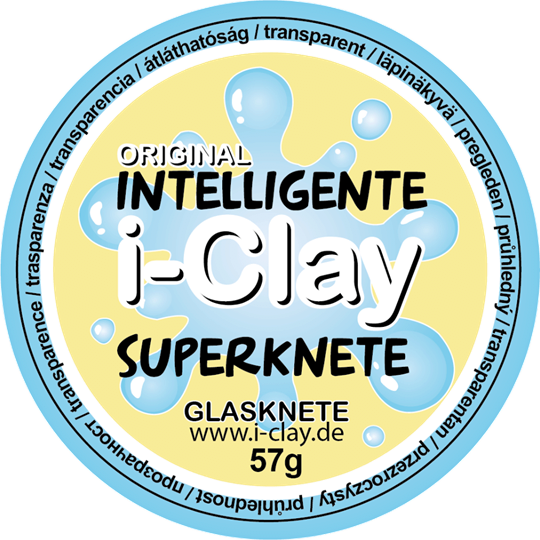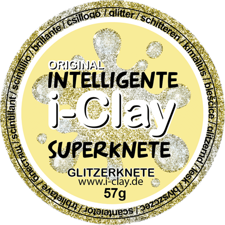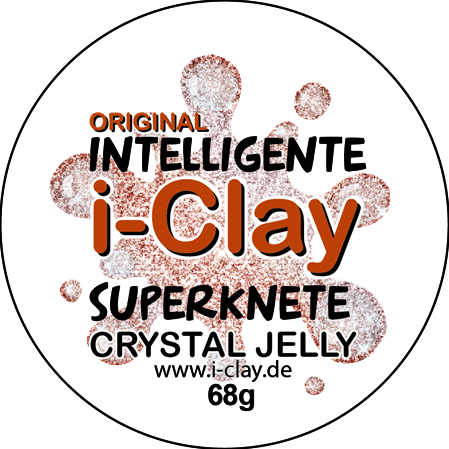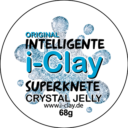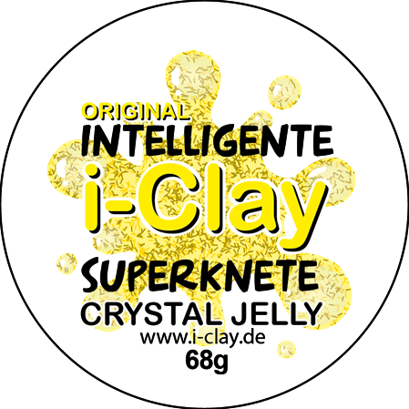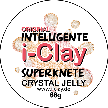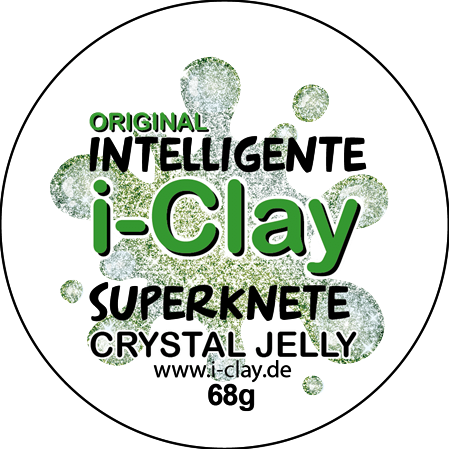 Die i-Clay Crystal Jelly lässt sich wunderbar lang außeinanderdehnen. Zieht man sie mehrmals außeinander und legt sie immer wieder zusammen, bekommt man den faszinierenden Glasfaser-Effekt. Mit der goldenen Crytal-Jelly kann man den lustigen 3-Tage Bart Effekt erzeugen. Reißt man die Knete außeinander und fährt mit den Fingern leicht über die Oberfläche fühlt es sich an als würde man über einen 3-Tage Bart fahren.