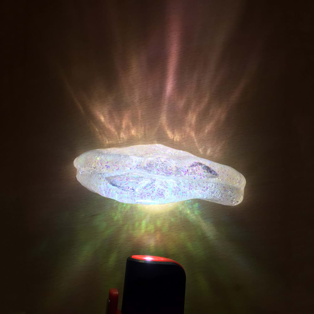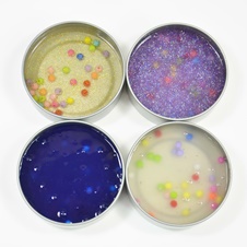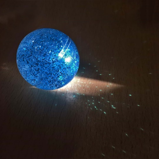 Knetet man sie zu einer Kugel und lässt, mithilfe einer Taschenlampe oder der Sonne, Licht drauffallen glitzern die Glitterpartikel wunderschön und erzeugen durch die Refkletion verschiedenste Muster. Mithilfe der Sonne kann man auch super den Brennglaseffekt nachmachen.