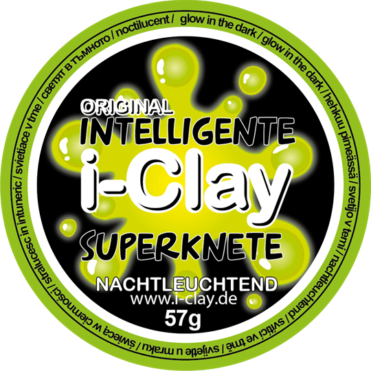 Intelligente Superknete, nachtleuchtend. Trocknet nicht aus, springt wie ein Flummi, zerläuft von allein, dehnt sich wie ein Kaugummi und lässt sich zerreißen wie Papier. In der Sonne aufladen und im Dunkeln leuchten lassen. Die Leuchtende Knetmasse bietet allerlei Spaß. Z.B. kann man vor dem Aufladen Stellen abdecken um ein schönes Schattenbild zu erzeugen oder man schreibt mit einem UV-Licht Nachrichten in die Knetmasse.